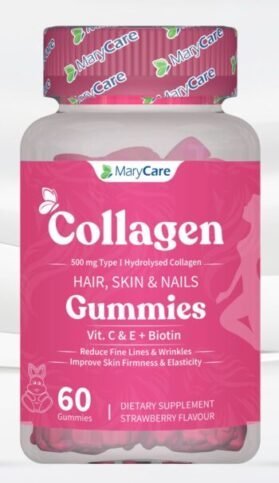 MaryCare Collagen Hair, Skin & Nails Gummies – Strawberry Flavor (60 Count)